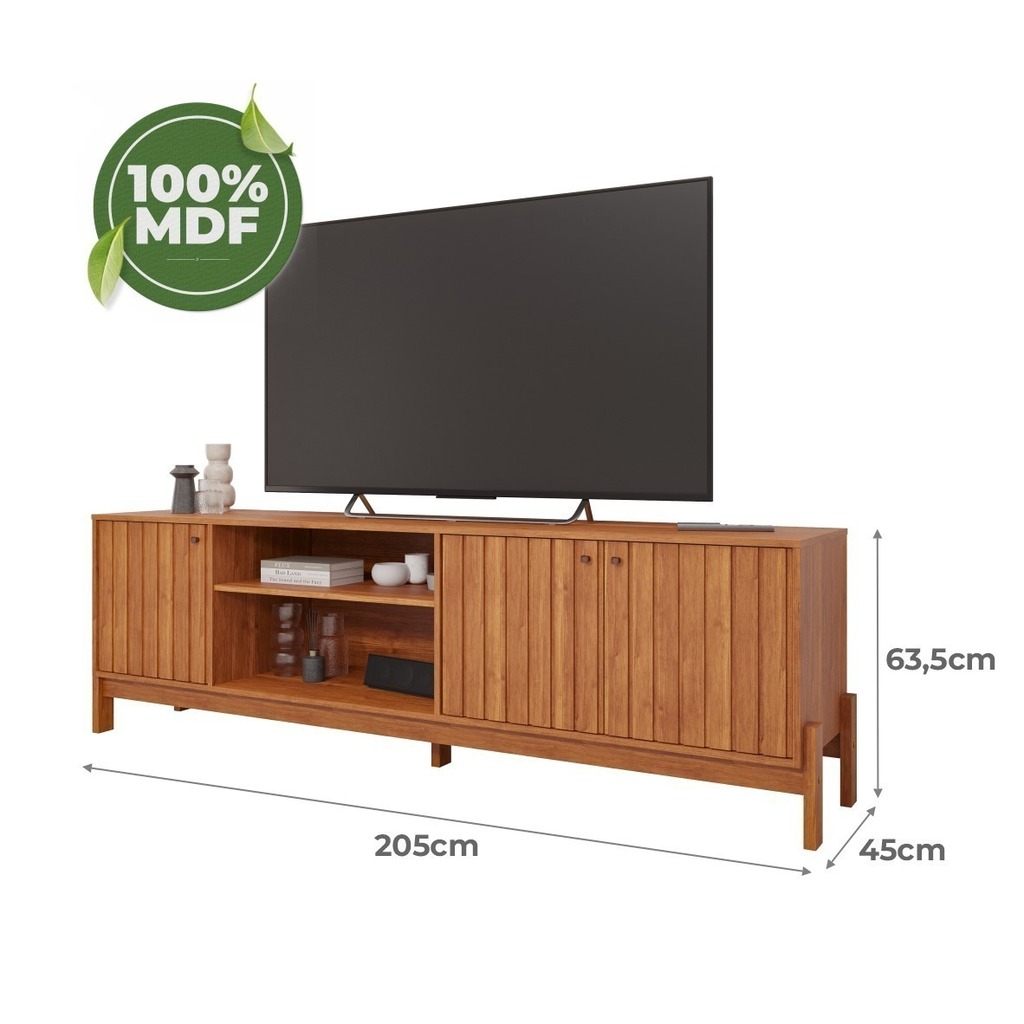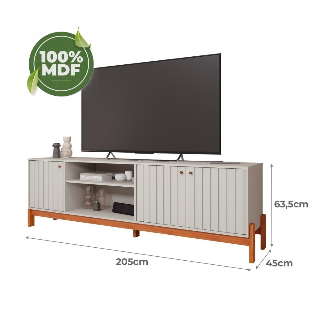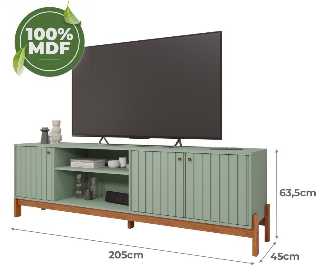 A Bancada Holanda possui um design moderno, com três portas ripadas com puxadores na elegante cor cobre, além de dobradiças de 35mm com fechamento suave (slow motion).